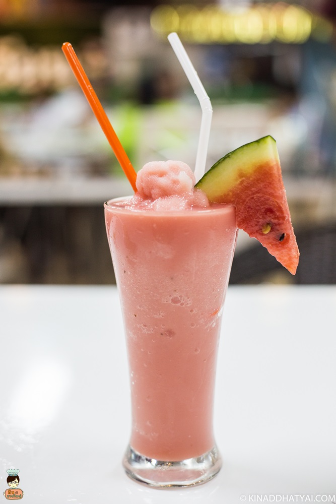 ระหว่างรออาหาร ทานเครื่องดื่มสดชื่นๆสักอย่าง แตงโมปั่น กันหน่อย