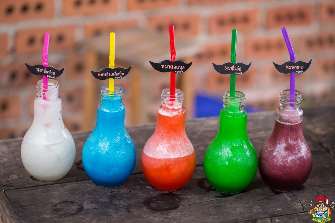 หรือจะเป็นแบบปั่น ในแต่ละสีก็มีชื่อเรียกเท่ห์ๆ ที่ไม่ซ้ำกันและซ้ำใคร ไม่ว่าจะเป็น หมาลิ้นห้อย หมาเห่าเครื่องบิน หมาตอแหล หมากินผัก หมาคาบาเร่ คือแต่ละชื่อนี่ต้องบอกเลยว่าเจ้าของร้านช่างคิดมากกกก และด้วยความที่อิมพอร์ตมาไกลจากเชียงใหม่ ไม่ซ้ำใครและมีร้านเดียวในหาดใหญ่แน่นอนละแบบนี้ ต้องลองกันน้าาา