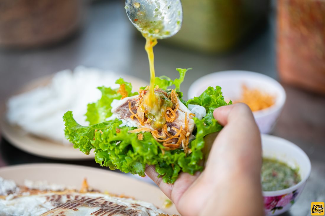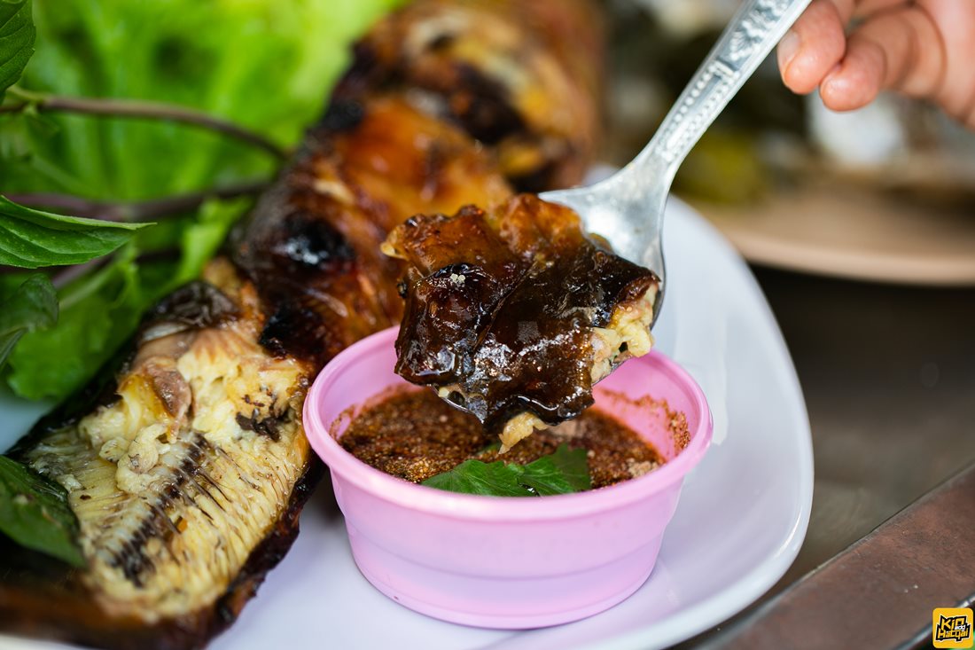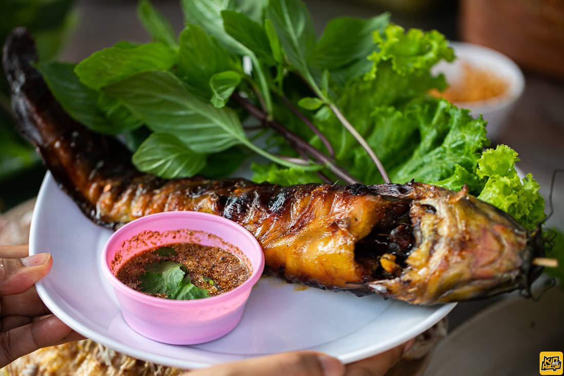 ในส่วนของปลาดุกย่างนั้น แนะนำให้กินกับน้ำจิ้มแจ่ว คือดีมากๆ เนื้อปลามีความมัน จิ้มกับน้ำจิ้มแจ่วได้รสเผ็ดเปรี้ยวแซ่บๆ กินคู่กับเส้นขนมจีนก็คือยิ่งดีเลยจ้า กินผักตามเข้าไปด้วย ฟินมาก