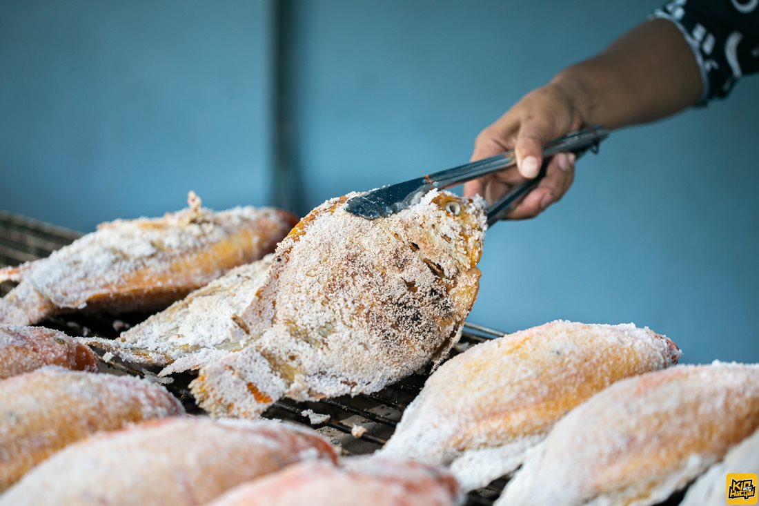 ที่ร้านบังเหรดจะเป็นคนเตรียมปลาทั้งหมดด้วยตัวเอง ตั้งแต่จัดร้าน ก่อไฟ และนำปลาลงมาเผา บอกเลยว่า แค่เห็นก็รู้เลยว่าร้านนี้ต้องขายดีแน่นอน เพราะบังเผาปลาเยอะมากๆ