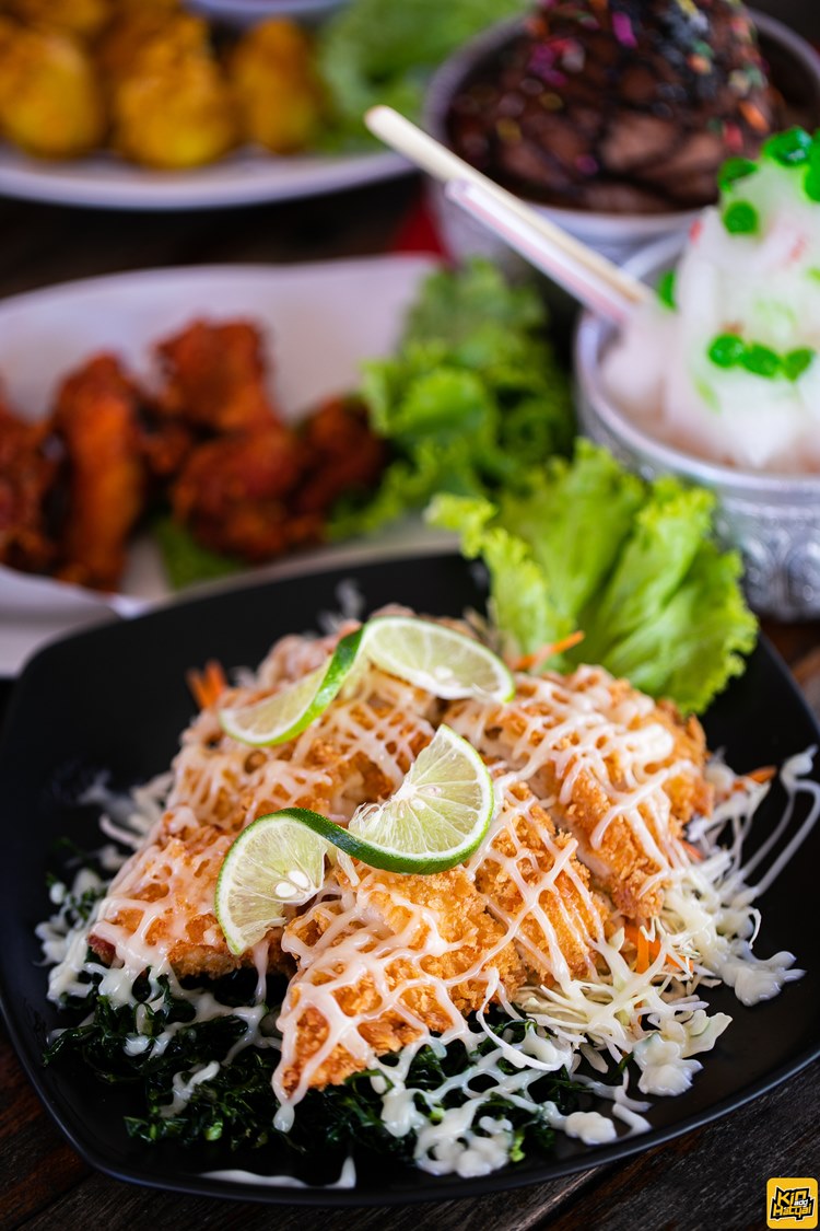 ของกินเล่นเพลินๆก็มีให้เลือกเยอะอย่าง “ไก่ทอดน้ำปลา” มาในส่วนของปีกกลางทอดจนกรอบมาพร้อมน้ำจิ้มไก่ “ไข่ห่อทอง” อีกหนึ่งของกินเล่นเพลินๆ ไข่นกกระทาที่ห่อมาด้วยแผ่นเกี๊ยว ทอดจนเหลืองกรอบเพลินมากจริงๆเลยกับเมนูนี้