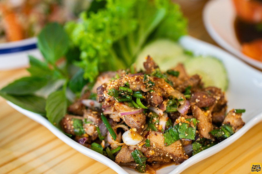 หอมกลิ่นข้าวคั่วมาแต่ไกล อีกหนึ่งเมนูยอดฮิตไม่แพ้เมนูใดๆเลย “น้ำตกหมูย่าง” ถึงหมูจะขึ้นราคาแต่ปริมาณหมูที่ให้มายังจัดเต็มเหมือนเดิมเลยจ้า หมูย่างๆเน้นๆที่จัดเต็มทั้งเครื่องสมุนไพรและข้าวคั่วได้ถึงรสชาติของน้ำตกแท้ๆเลยยมาพร้อมผักเคียงอีกหนึ่งเมนูทานกันแบบเพลินๆ