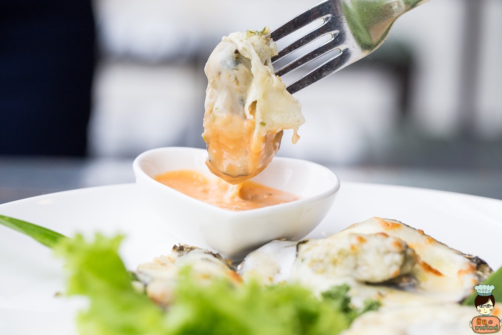 “หอยนางรมอบชีส” หอยนางรมตัวโตอบมาในชีสหอมกรุ่น เสริฟพร้อมซอสมายองเนสสูตรพิเศษของทางร้าน ลองได้เอาหอยจิ้มลงไปแล้วเข้าปาก บอกได้เลยว่ากลมกล่อมลงตัวเป็นที่สุดนะจ๊ะนายจ๋าา