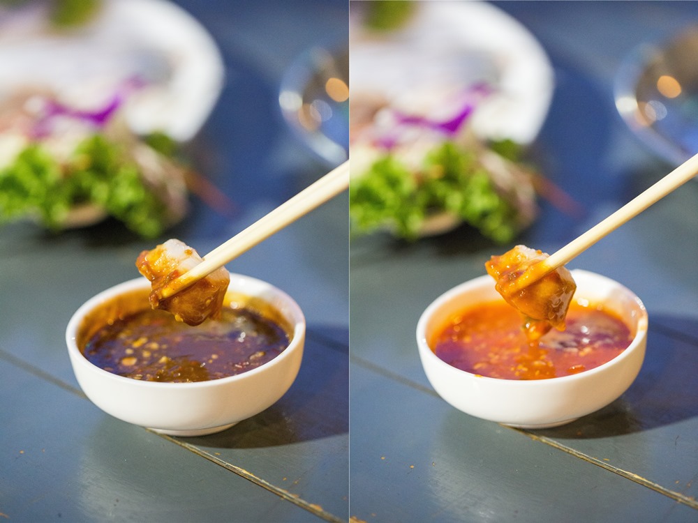 ลวกเสร็จก็เด็ดที่น้ำจิ้มนี่แหละคุณพระ!!! มีทั้งน้ำจิ้มสูตรเต้าเจี้ยว และน้ำจิ้มสุกี้ จะเลือกแบบนี้หรือเลือกแบบนั้น ก็แล้วสไตล์ใครสไตล์มัน เอ้าาาาลุยยยยย