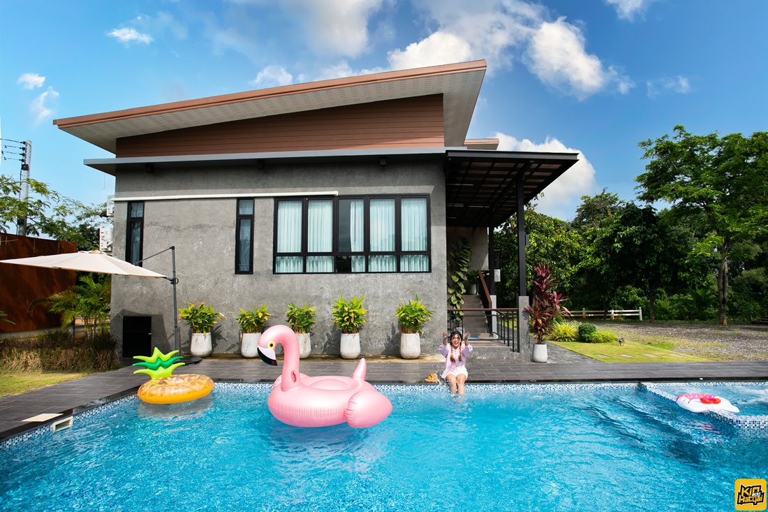 อีกหนึ่งความชิลล์คือ ที่นี่มีสระว่ายน้ำด้วยนั่นเอง เป็นสระว่ายน้ำขนาดใหญ่ที่พอจะจัดงานปาร์ตี้ หรือใครที่มาจากต่างจังหวัดพาครอบครัวมาพักพ่อนก็เหมาะเลยน้าาา